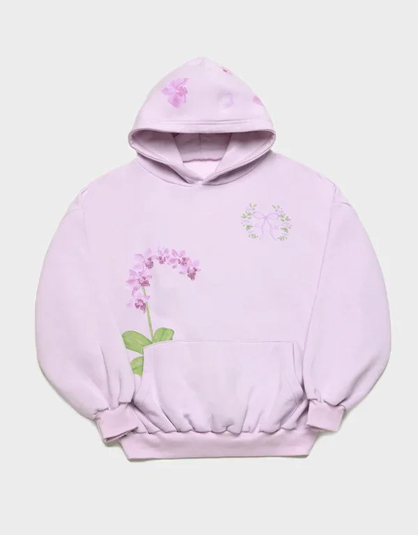 The bold orchid design on the front of the hoodie makes a striking statement, while the soft pastel colors evoke a sense of tranquility and beauty. Featuring an adjustable drawstring hood, ribbed cuffs, and a spacious front pocket, this hoodie balances both style and practicality with ease.
