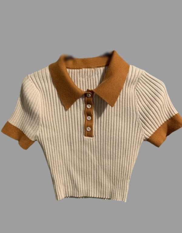 Liza Koshy Players 2024 Ashley White Polo Crop Knit Top