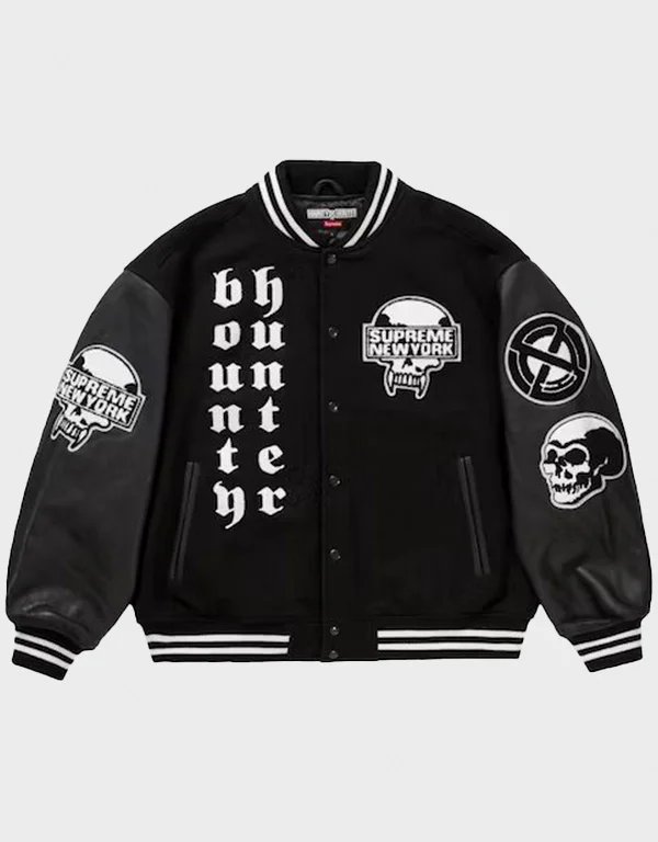 supreme bounty hunter black varsity jacket