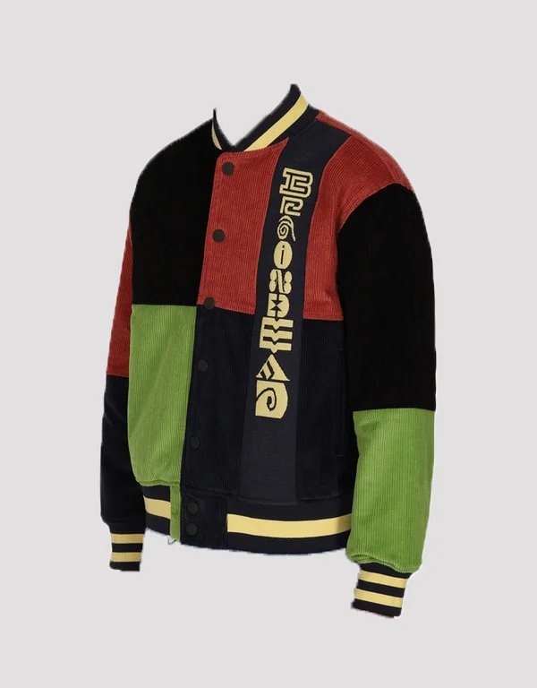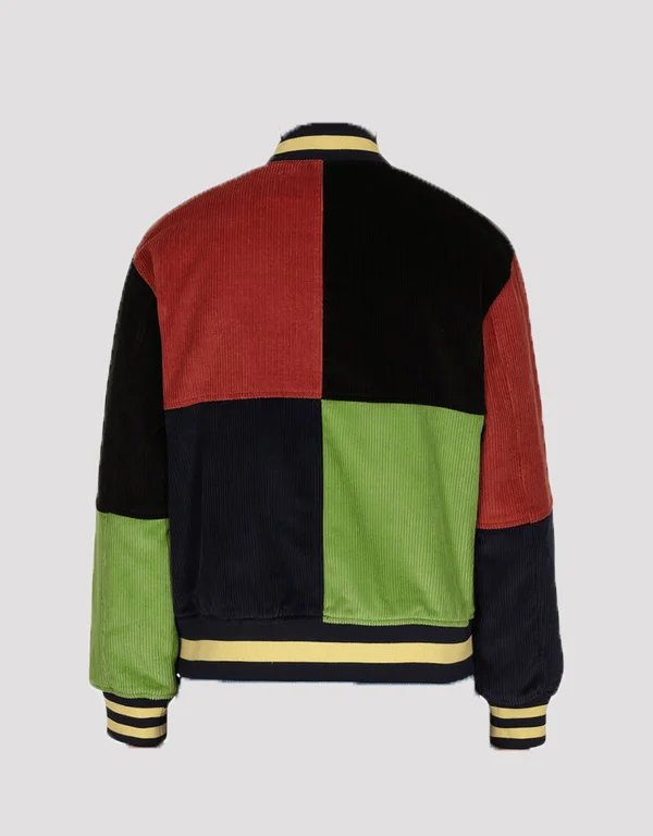 brain dead patchwork corduroy letterman jacket