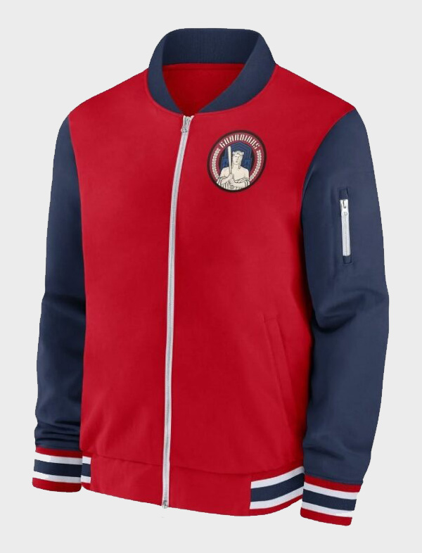 MLB Mens Cleveland Guardians Red/Blue Full-Zip Bomber Jacket