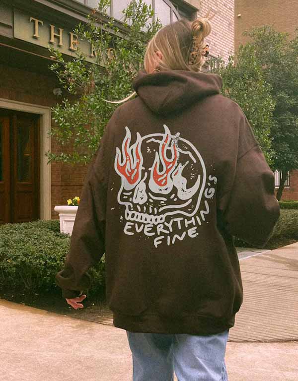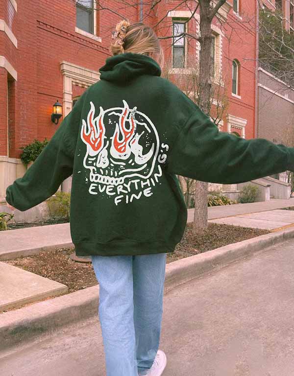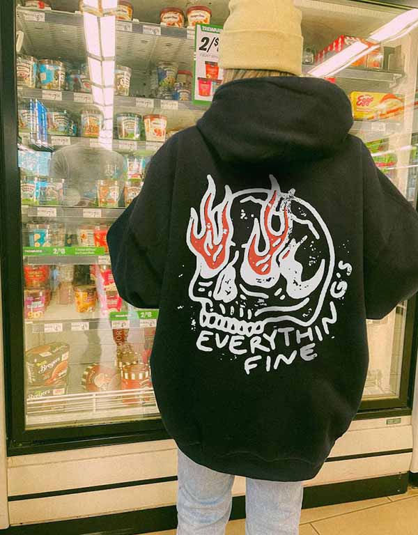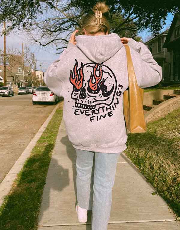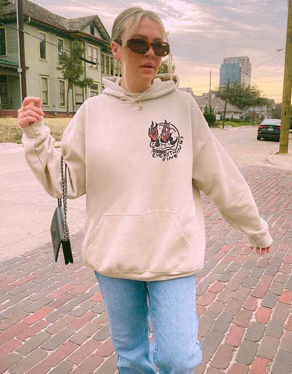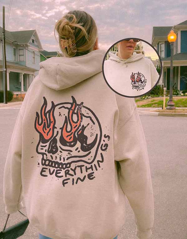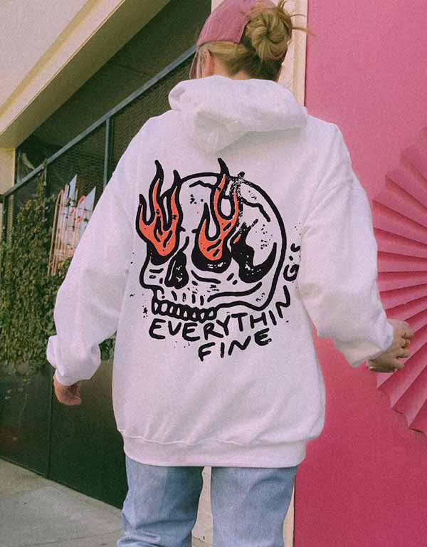 Home » Shop » Everything’s Fine With Boho Hippie Skull on Fire Unisex Hoodie