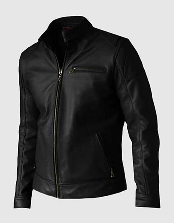 men's black leather jacket