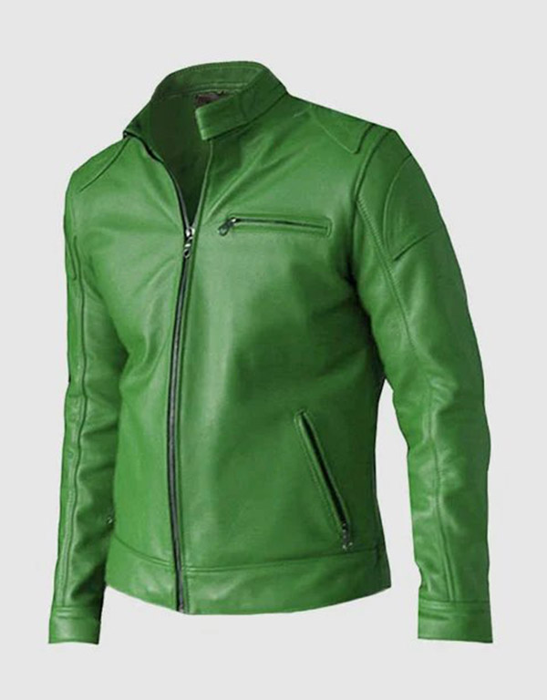 men's green leather jacket