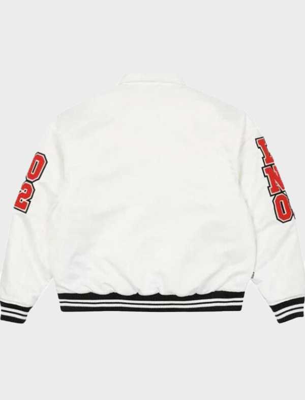 Be the first to review “Palace Satin Varsity Jacket in White” Cancel reply