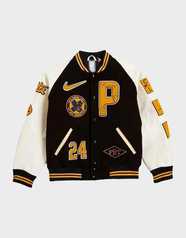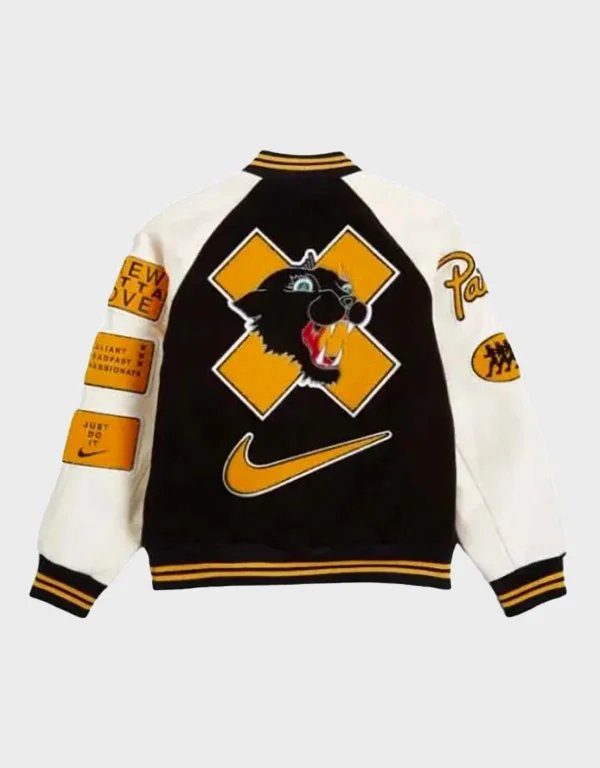 nike x pattarunning team black white varsity jacket