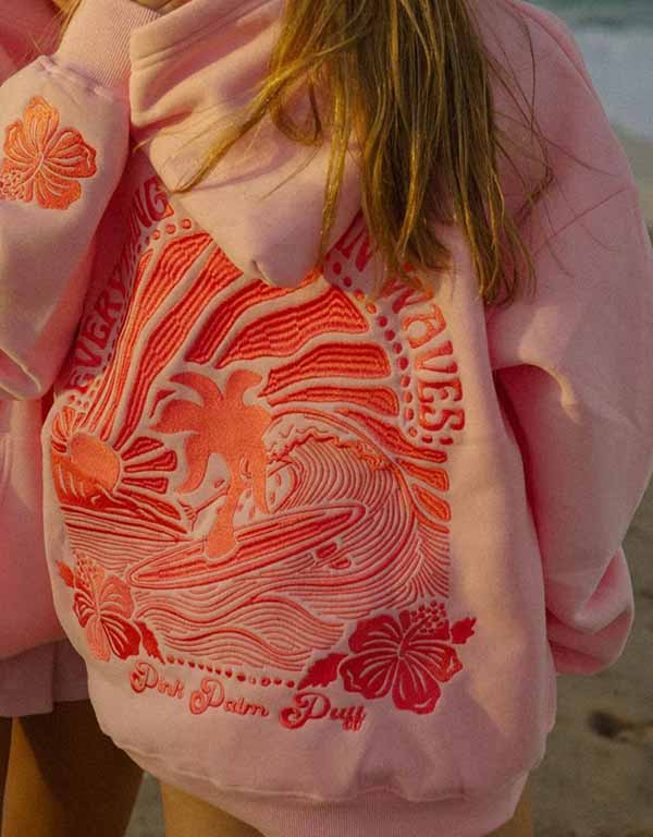 everything comes in waves pink palm puff oversized hoodie