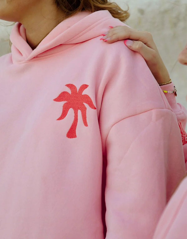 pink palm puff hoodie