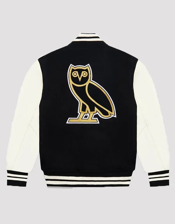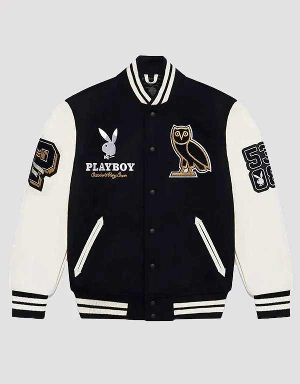 October’s Very Own Playboy Black Varsity Jacket With Leather Sleeves