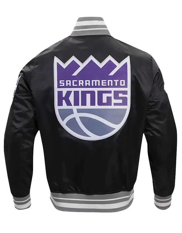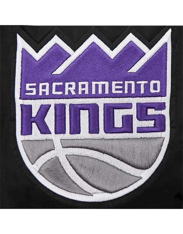 Sacramento Kings Script Tail Black Varsity Satin Jacket