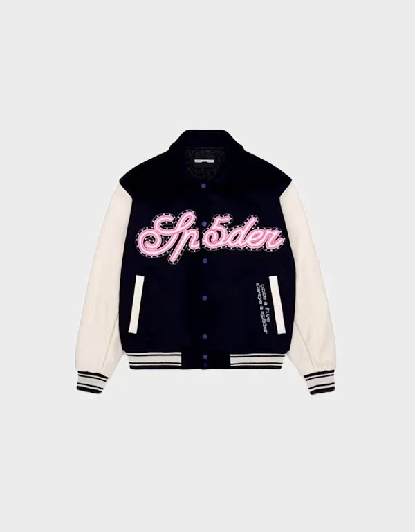 Sp5der Navy/ Cream Wool Varsity Jacket
