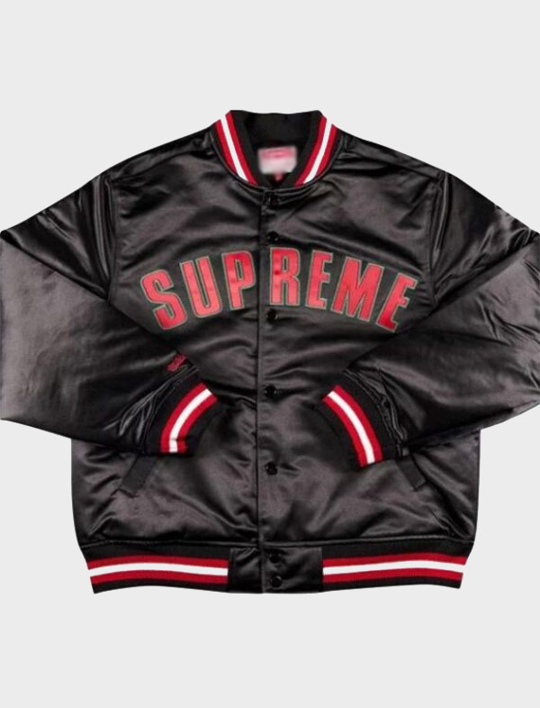 Supreme Mitchell & Ness Satin Black Varsity Jacket